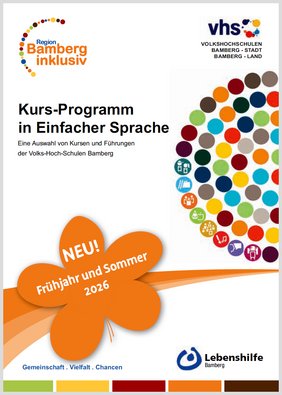 Jeder Mensch, ob mit oder ohne Behinderung, soll an allen Kursen der Volkshochschule teilnehmen können. Bei Bedarf kann eine Begleitperson gebucht werden. Jedes Semester erscheint in Kooperation mit der Lebenshilfe Bamberg ein Auszug des VHS-Kursprogramms in einfacher Sprache.