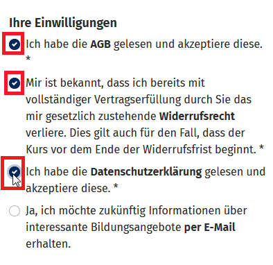 You'll then receive your course ticket.